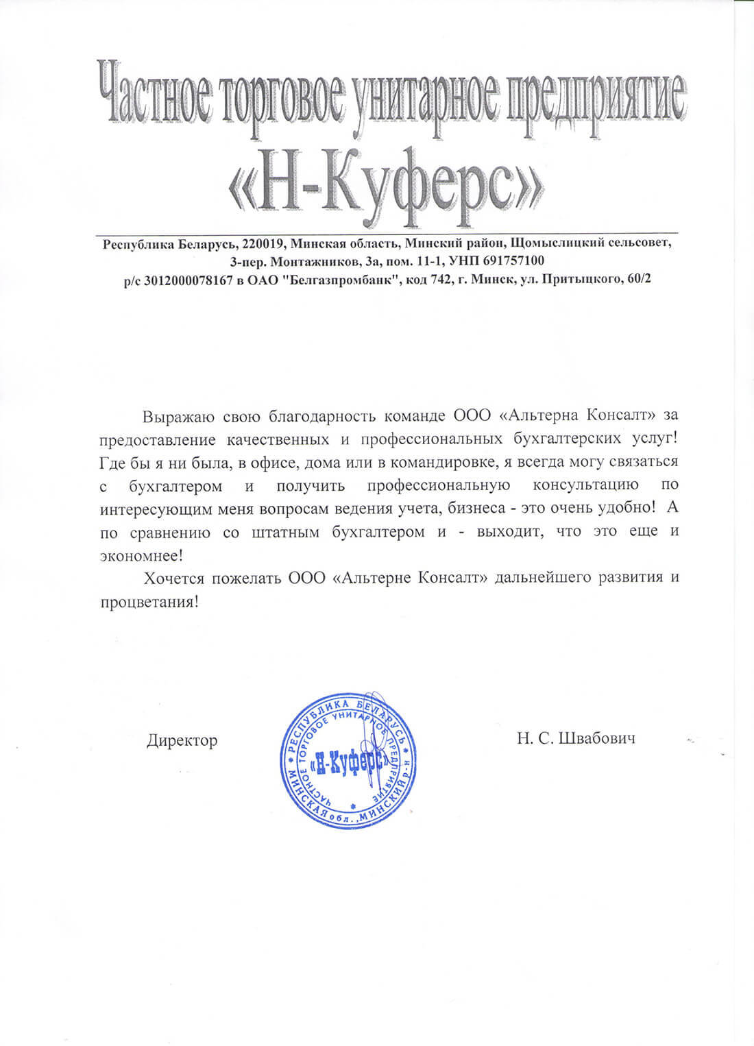- Может быть интересна - иностранным компаниям, желающим получить полный комплекс услуг по ведению бизнеса в Беларуси - юридический адрес в г. Минске или Минском районе, полное ведение бухгалтерского учета, услуги номинального директора.